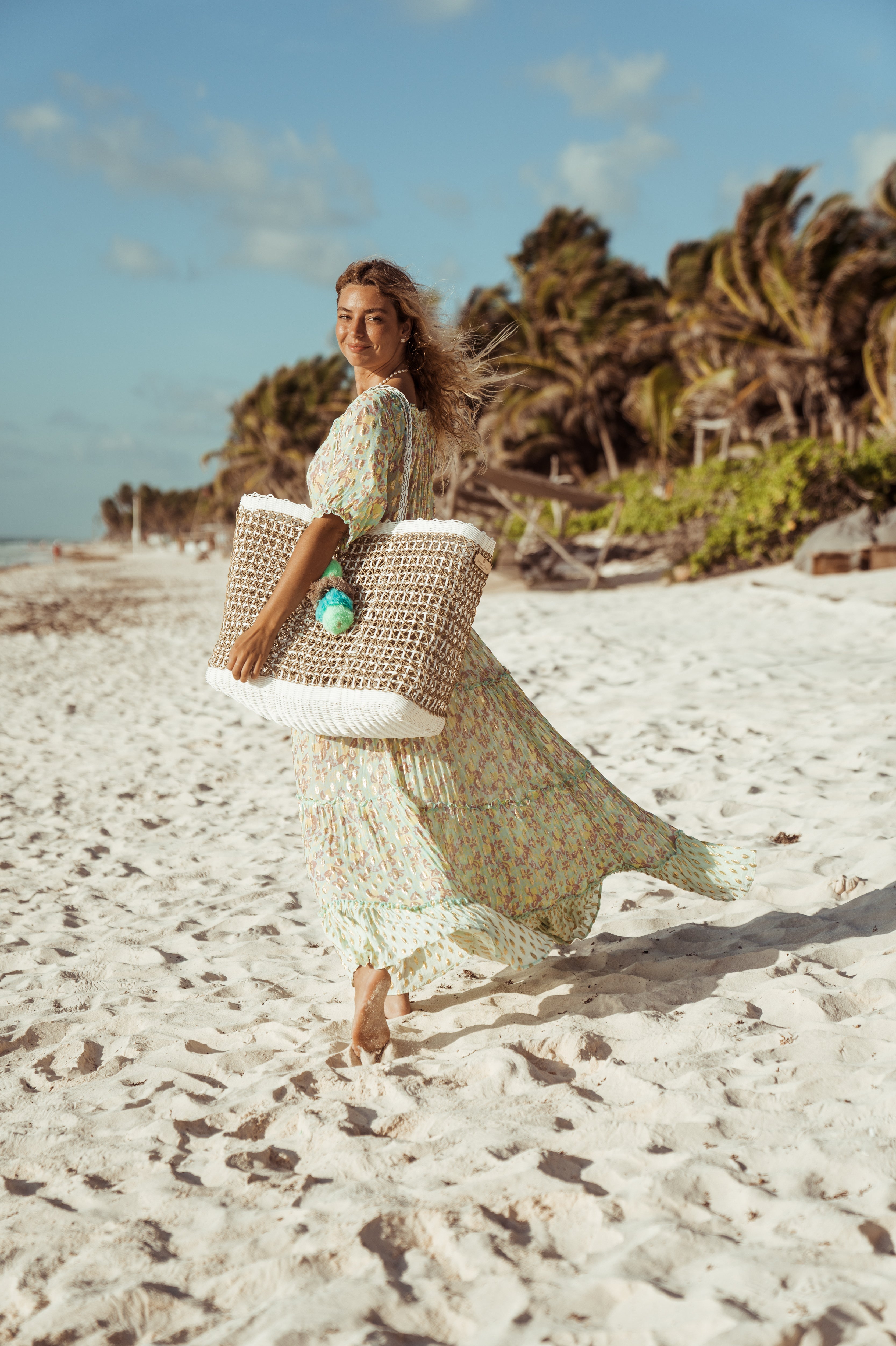 Lightweight, durable, and effortlessly chic—the Palm Net Yatzil Tote is handcrafted from natural palm leaves, blending artisanal craftsmanship with timeless style. Its breathable design and versatile shape make it the perfect companion for beach days, market strolls, or everyday elegance.